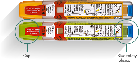 1. The blue safety release helps prevent accidental injection of the device. Do not remove the blue safety release until you are ready to use it.